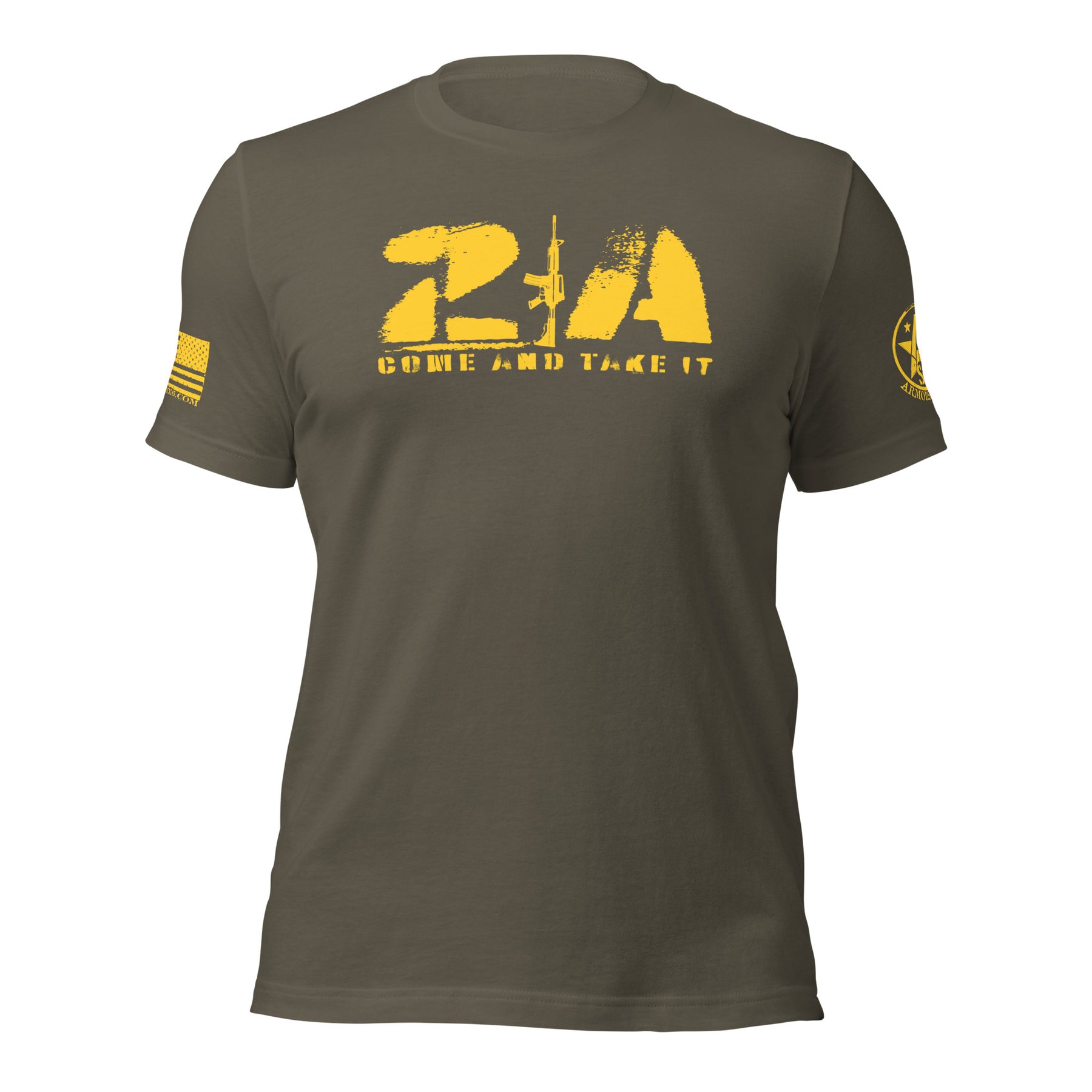 Stand firm in your beliefs with this bold and patriotic 2A "Come and Take It" T-Shirt. Designed for defenders of freedom and supporters of the Second Amendment, this shirt features a striking 2A symbol proudly displayed on the front. Beneath it, the powerful and timeless phrase, "Come and Take It", serves as a resolute statement of strength and determination.